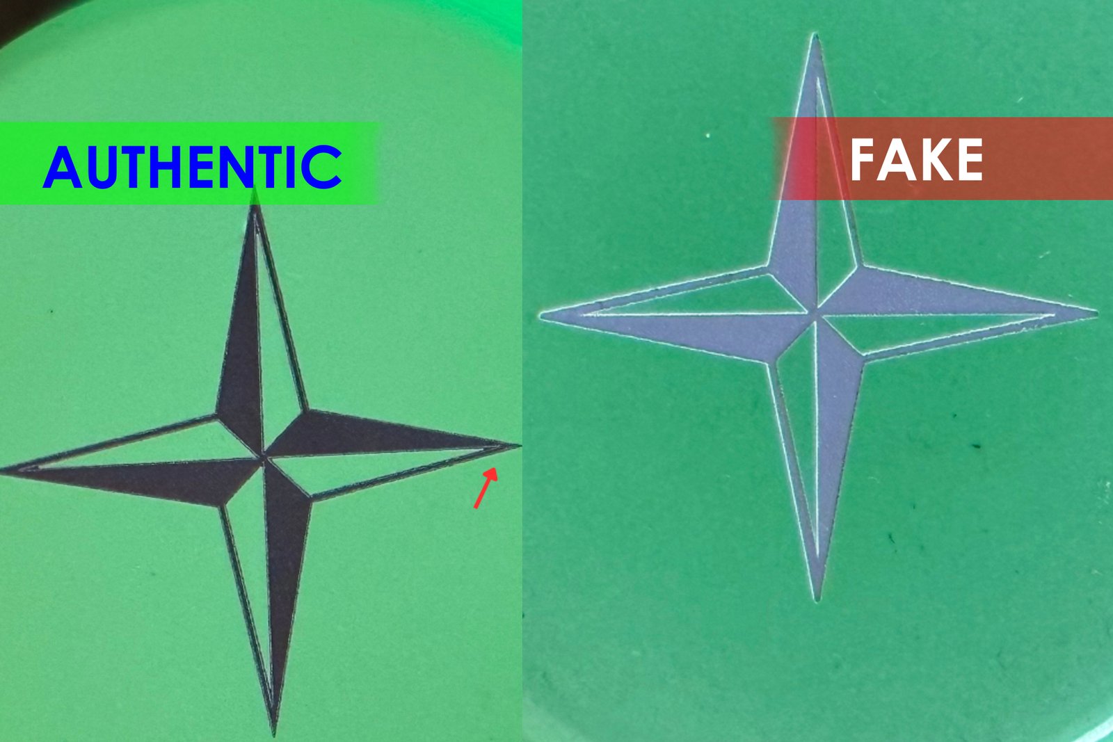 Основний логотип бренду котрий розміщений на виробі дає чітку підказку де оригінальний продукт, а де його копія завдяки якості гравіювання. На фото нижче наочний приклад.