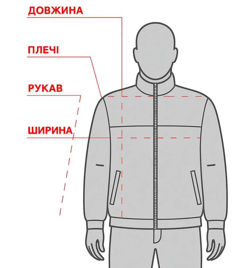 - Довжина — від найвищої точки плеча до нижнього краю.