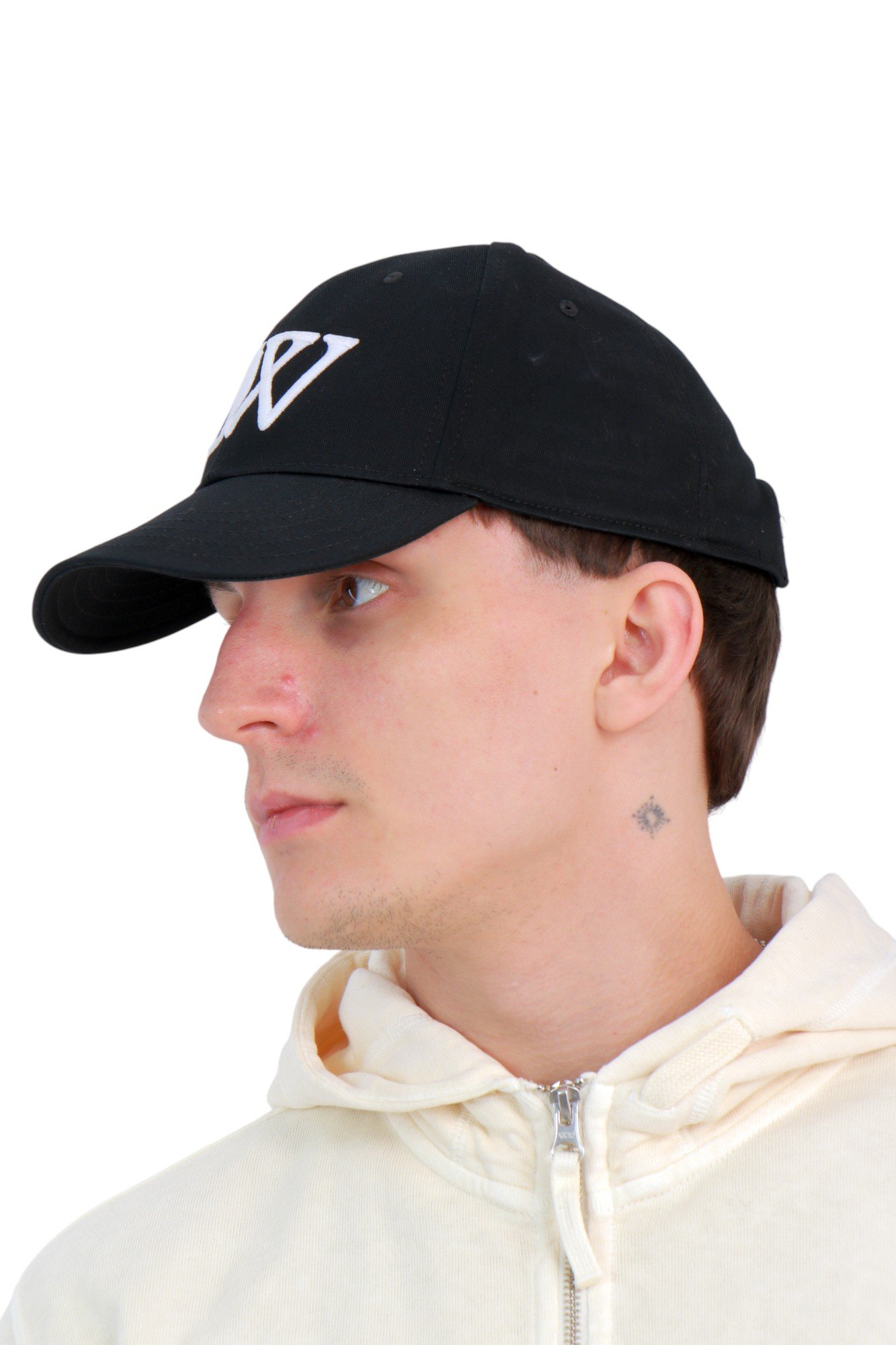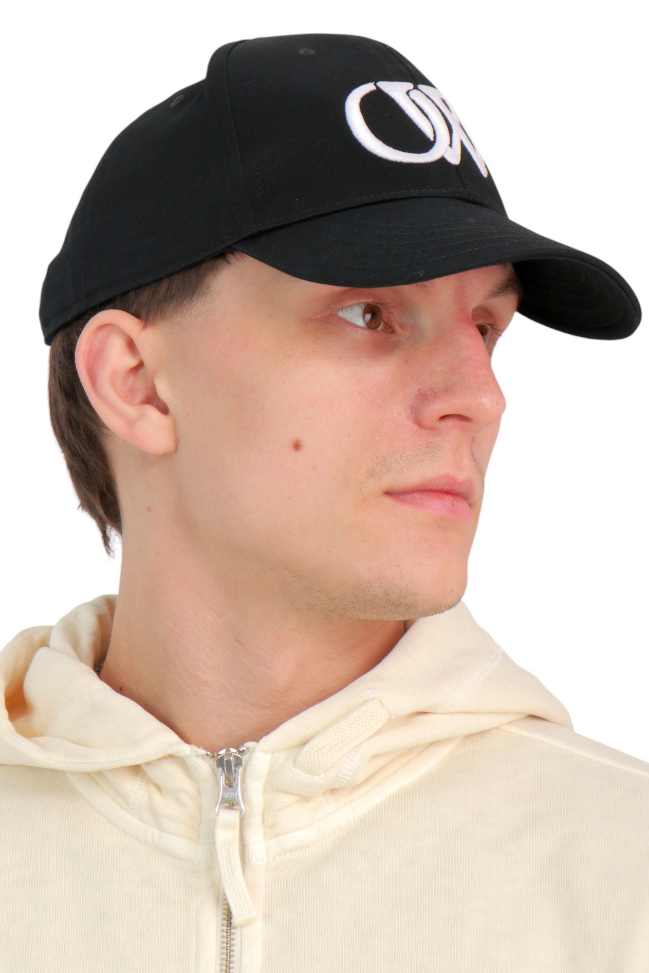 Кепка Off-White Cap With Logo Black – арт. OMLB052C99FAB003 виконана у класичному чорному кольорі з контрастною об’ємною вишивкою логотипу Off-White на фронтальній панелі. Лаконічна графіка робить модель впізнаваною, але стриманою, зберігаючи баланс між мінімалізмом і характерним дизайнерським кодом бренду.