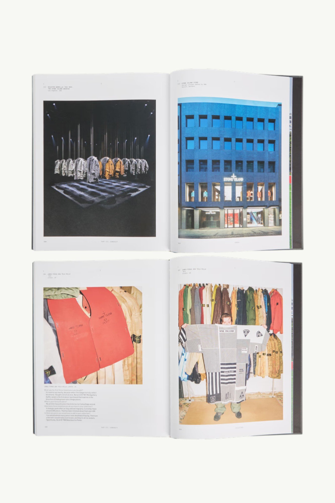 Видання розкриває ключові етапи розвитку бренду: експерименти з тканинами, інноваційні технології фарбування Garment Dye, створення культового Compass Badge та становлення Stone Island як символу дослідження матеріалів.