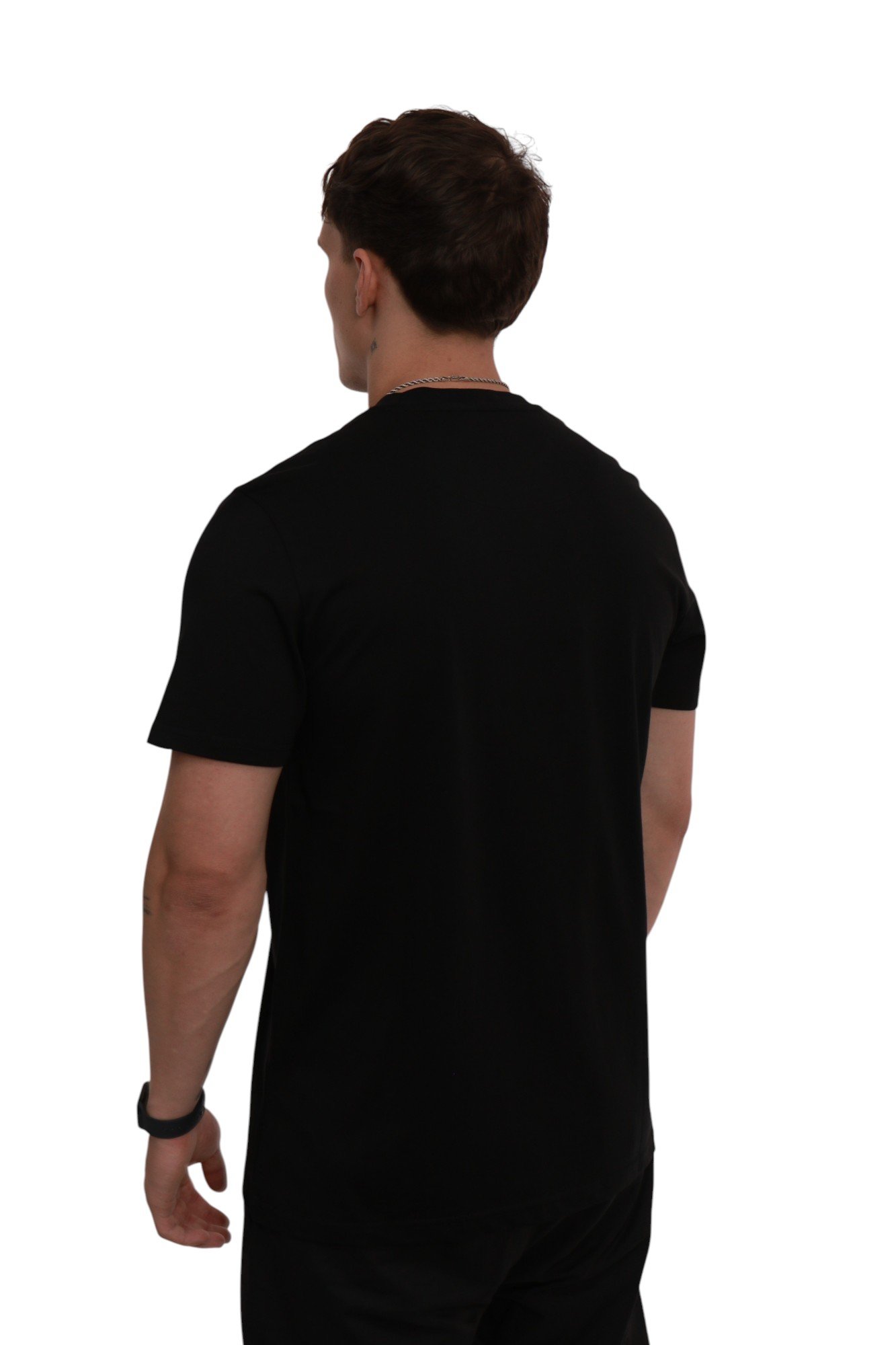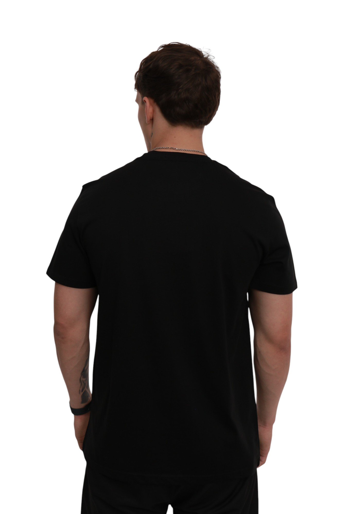 Футболка виготовлена зі 100% чесаної бавовни середньої щільності, що гарантує комфорт і довговічність. Чорний колір створює універсальну основу, яка легко інтегрується в будь-який гардероб, а контрастний принт додає виразності та унікальності. Ребристий комір допомагає зберігати форму навіть після тривалого носіння.